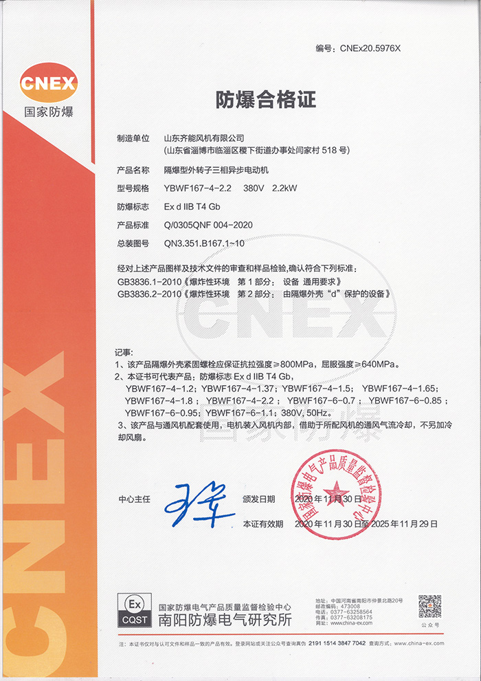 產品名稱: 防爆電機合格證-YBWF167